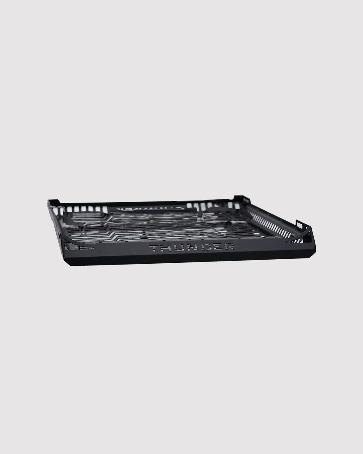 La Thunder Roof Basket es la cesta de techo que recomendamos cuando la carga supera lo que una baca lisa o un cofre rígido pueden manejar. Equipaje voluminoso, cajas irregulares, equipamiento de obra, material de camping, herramienta — todo lo que necesita amarre fuerte y bordes que retengan.