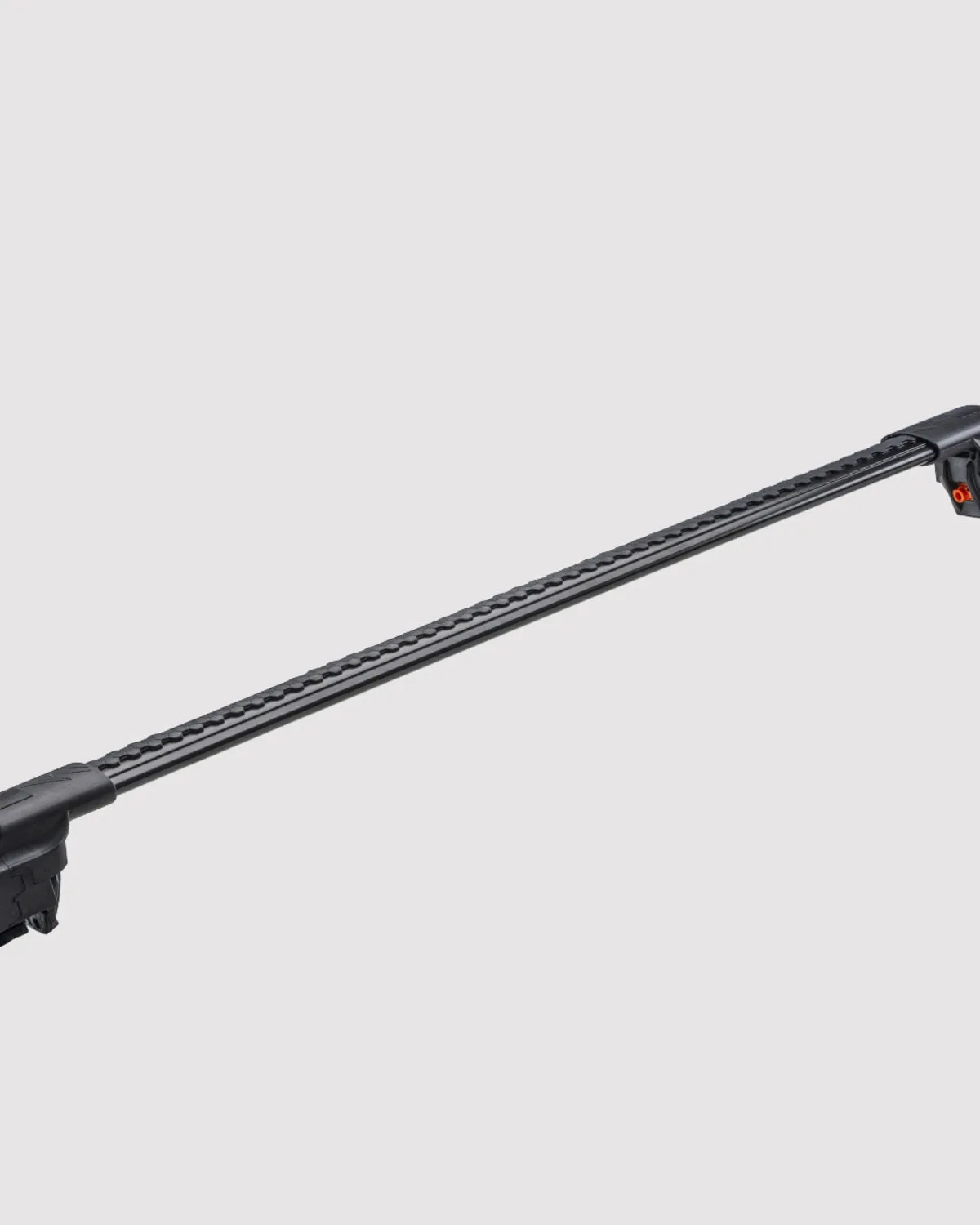 Barra de techo diseñada para ser segura, estilizada y versátil. Su perfil aerodinámico reduce el ruido de viento; disponible en Negro y Plata Satinada.